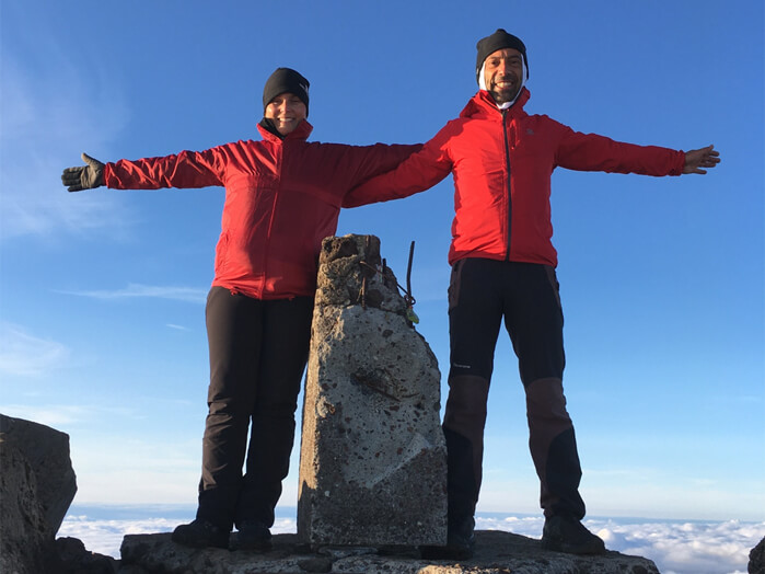E talvez o mais memorável de todos: a subida ao Pico, em 2021, carregada de simbolismo, esforço e emoção. Dormiram na cratera, enfrentaram frio, lágrimas e o peso da montanha — e foram recompensados com o nascer do sol mais bonito das suas vidas. Para o casal, este momento simbolizou força, união e cumplicidade.