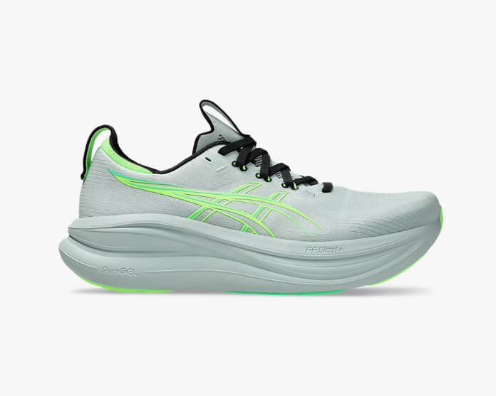 Ao calçar as ASICS Gel-Nimbus 28 pela primeira vez, aquilo que mais se destaca é o conforto imediato. Não é preciso período de adaptação. O pé entra, ajusta-se e sente-se logo aquele acolchoamento generoso no calcanhar e na zona do “colarinho”, típico da linha Nimbus.